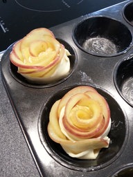 Apfelrosen bei 190°C Grad Umluft im Ofen etwa 40 Minuten backen.
