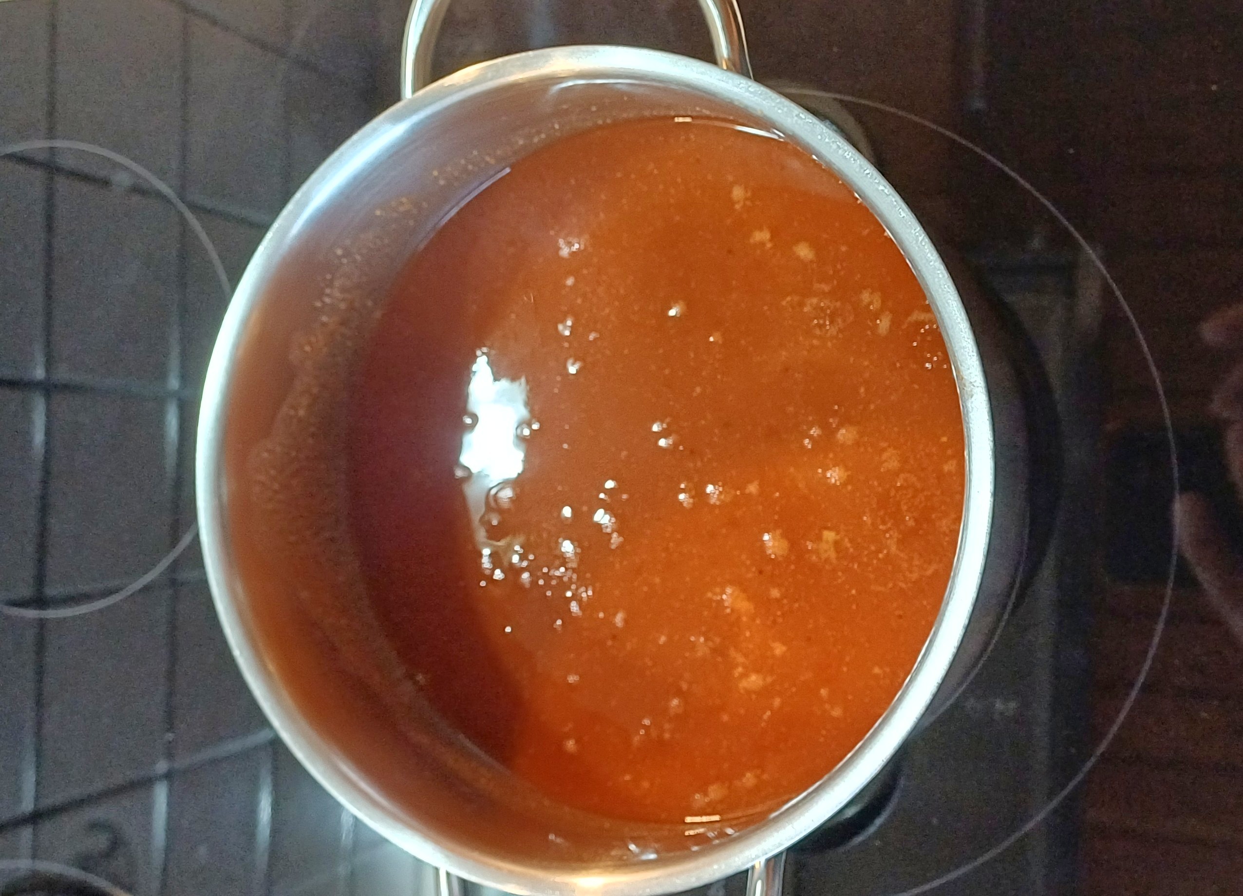 Die Soße 20 Minuten bei niedriger Hitze kochen lassen. Das Lorbeerblatt entfernen und servieren.