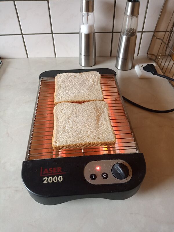 Backofen auf 180°C vorheizen. Vier Scheiben Toast (Sandwich Größe) leicht anrösten.
