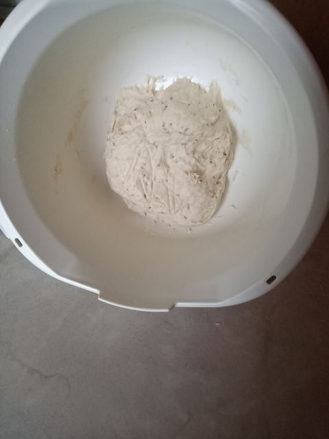 glatten Teig verkneten. Zugedeckt circa 1 Stunde bei Raumtemperatur ruhen lassen. Die Teigmasse sollte sich verdoppeln.